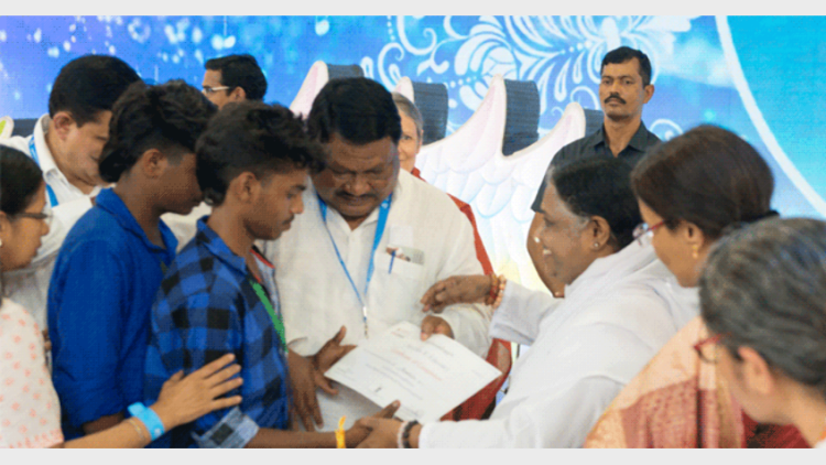 2018 ഒക്ടോബറില്‍ അമൃതവിശ്വവിദ്യാപീഠം ചാന്‍സലര്‍ ശ്രി മാതാ അമൃതാനന്ദമയി ദേവി ബഹുമാനപെട്ട ഗോത്രവര്‍ഗ്ഗകാര്യ മന്ത്രി ശ്രീ ജുവല്‍ ഒറോമുമായി ചേര്‍ന്ന് അമൃതയുടെ കമ്പ്യൂട്ടര്‍ സാക്ഷരതാ പദ്ധതിയുടെ ഭാഗമായി ആയിരം ആദിവാസി വിദ്യാര്‍ത്ഥികള്‍ക്ക് സാക്ഷ്യപത്രങ്ങള്‍ വിതരണം ചെയ്യുന്നുണ്ട്.