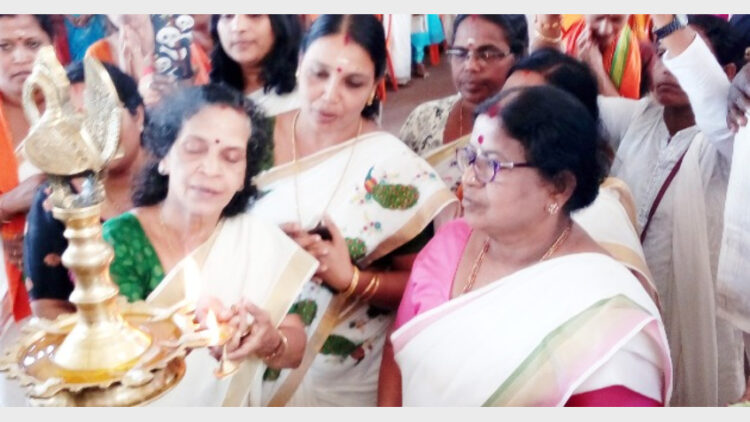പത്തനംതിട്ട: ശബരിമല യുവതി പ്രവേശനത്തില് സുപ്രീംകോടതി വിധി നടപ്പാക്കുന്നതിനെതിരെ ശബരിമല കര്മസമിതിയുടെ നേതൃത്വത്തില് എരുമേലിയില് മാതൃശക്തി ഉപവാസ യജ്ഞം. എരുമേലി ശ്രീധര്മശാസ്താ ക്ഷേത്രാങ്കണത്തില് നടന്ന ഉപവാസ യജ്ഞം പൂഞ്ഞാര് കൊട്ടാരം പന്തളം രാജാവിന്റെ സഹോദരി പൂരാടം തിരുനാള് മംഗളാഭായി തമ്പുരാട്ടി ഉദ്ഘാടനം ചെയ്തു. വിശ്വഹിന്ദു പരിഷത്ത് സംസ്ഥാന ഉപാധ്യക്ഷയും മാതൃശക്തി സംയോജകയുമായ പ്രൊഫ. സരള എസ്. പണിക്കര് അധ്യക്ഷത വഹിച്ചു.