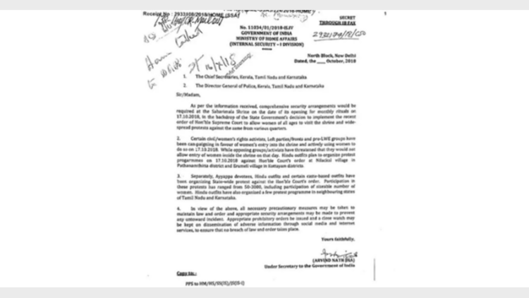 ശബരിമല വിഷയത്തില്‍ സുപ്രീം കോടതി വിധി നടപ്പാക്കുമ്പോള്‍ ക്രമസമാധാനം പാലിക്കണമെന്നും വിശ്വാസികളുടെ വികാരം മാനിക്കണമെന്നുമാണ് കേന്ദ്ര നിര്‍ദ്ദേശം. സാമൂഹ്യ മാധ്യമങ്ങളിലൂടെ തെറ്റായ പ്രചാരണങ്ങള്‍ ഉണ്ടാകാതെ നോക്കണമെന്നല്ലാതെ നിരോധിക്കണമെന്ന് കേന്ദ്ര ആഭ്യന്തര മന്ത്രാലയത്തിന്റെ സര്‍ക്കുലറില്ല. നിയമങ്ങള്‍ ”പ്രയോഗിക്കണമെന്ന്” കേന്ദ്രം പറഞ്ഞതായും മുഖ്യമന്ത്രി പറയുന്നു.