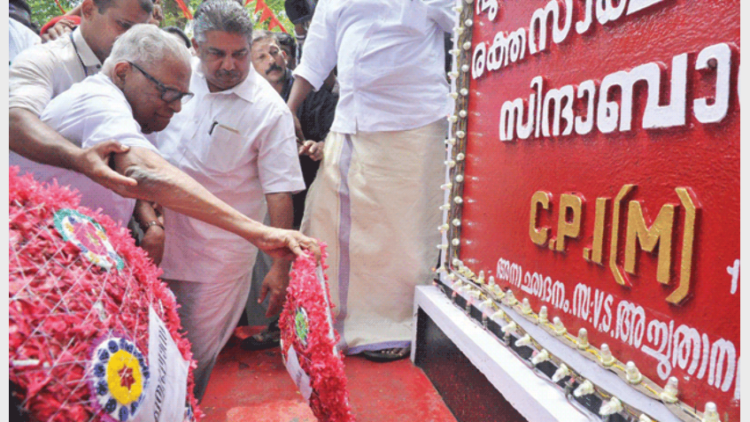 ആലപ്പുഴ: പുന്നപ്രവയലാര്‍ സമരവാരാചരണത്തിന്റെ ഭാഗമായി  നടന്ന പുഷ്പാര്‍ച്ചനയില്‍ പുന്നപ്ര സമരഭൂമിയിലെ ബലികുടീരത്തില്‍ സിപിഎം നേതാവ് ചെരുപ്പ് ധരിച്ച് കയറിയത് വിവാദമാകുന്നു. സിപിഎം ആലപ്പുഴ ജില്ലാ സെക്രട്ടറിയേറ്റംഗം പി.പി. ചിത്തരഞ്ജനാണ് രക്തസാക്ഷികളെ അവഹേളിച്ച് ബലികുടീരത്തില്‍ ചെരുപ്പ് ധരിച്ച് ചവിട്ടിക്കയറിയത്.