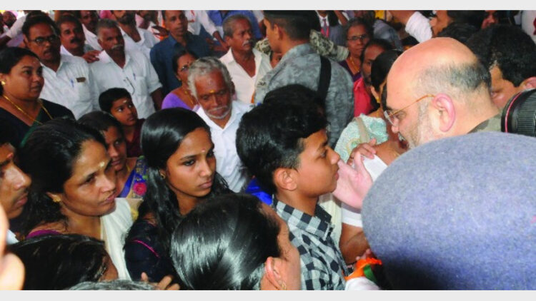 ബലിദാനി കുടുംബങ്ങളെ സാന്ത്വനിപ്പിച്ചും വണങ്ങിയും അമിത് ഷാ