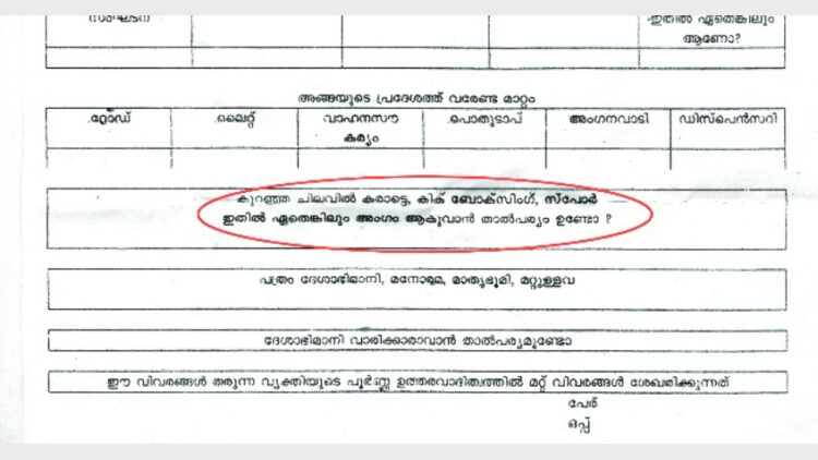 സിപിഎമ്മില്‍ പ്രവര്‍ത്തിക്കാന്‍ താല്‍പര്യമുണ്ടോ, സിഐടിയു, ഡിവൈഎഫ്‌ഐ, എസ്എഫ്‌ഐ എന്നീ സംഘടനകളില്‍ ചേരാന്‍ താല്‍പ്പര്യമുണ്ടോ എന്നും സര്‍വേയില്‍ ചോദ്യമുണ്ട്. ഏതൊക്കെ പത്രങ്ങളാണ് വീട്ടില്‍ വരുത്തുന്നതെന്നും ദേശാഭിമാനി വരിക്കാരാകാന്‍ താല്‍പ്പര്യമുണ്ടോ എന്നും സര്‍വേ അന്വേഷിക്കുന്നു. ബാങ്ക് ലോണ്‍, വാഹനം, വിദ്യാഭ്യാസം തുടങ്ങിയ വ്യക്തികളുടെയും കുടുംബത്തിന്റെയും സാമാന്യ വിവരങ്ങള്‍ മുഴുവന്‍ അന്വേഷിക്കുകയാണ് സര്‍വേയിലൂടെ.