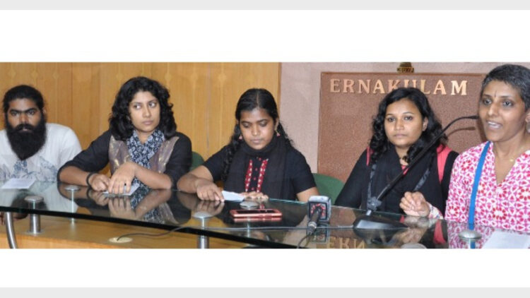 കണ്ണൂര് സ്വദേശിനികളായ രേഷ്മ നിശാന്ത്, ഷനില സജീഷ്, കൊല്ലം സ്വദേശിനി ധന്യ. വി.എസ് എന്നിവരാണ് ശബരിമലയില് പോകണമെന്ന ആവശ്യവുമായി വാര്ത്താസമ്മേളനം നടത്തിയത്. അയ്യപ്പനെ കാണാതെ ഇട്ട മാല അഴിക്കില്ലെന്ന് ഇവര് പറഞ്ഞു. വിപ്ലവത്തിലല്ല, വിശ്വാസത്തിലൂന്നിയാണ് മാലയിട്ടത്. ചോരചിന്തിയോ കലാപമുണ്ടാക്കിയോ ശബരിമലയില് പോകണമെന്ന് ആഗ്രഹമില്ല.