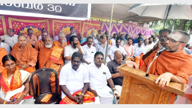 ശബരിമല കര്മസമിതി വര്ക്കിങ് ചെയര്പേഴ്സണ് കെ.പി ശശികല ടീച്ചര് മുഖ്യപ്രഭാഷണം നടത്തി. കെപിഎംഎസ് സംസ്ഥാന പ്രസിഡന്റ് എന്.കെ. നീലകണ്ഠന് മാസ്റ്റര് അധ്യക്ഷത വഹിച്ചു. ശബരിമല കര്മസമിതി ജനറല് കണ്വീനര് എസ്.ജെ.ആര്. കുമാര് സ്വാഗതം പറഞ്ഞു. ആര്എസ്എസ് പ്രാന്തകാര്യവാഹ് പി. ഗോപാലന്കുട്ടി മാസ്റ്റര്, വിവിധ ഹിന്ദു സംഘടനാ നേതാക്കള്, സന്ന്യാസി വര്യന്മാര്, തന്ത്രിമുഖ്യന്മാര് എന്നിവര് ധര്ണയില് പങ്കെടുത്തു.