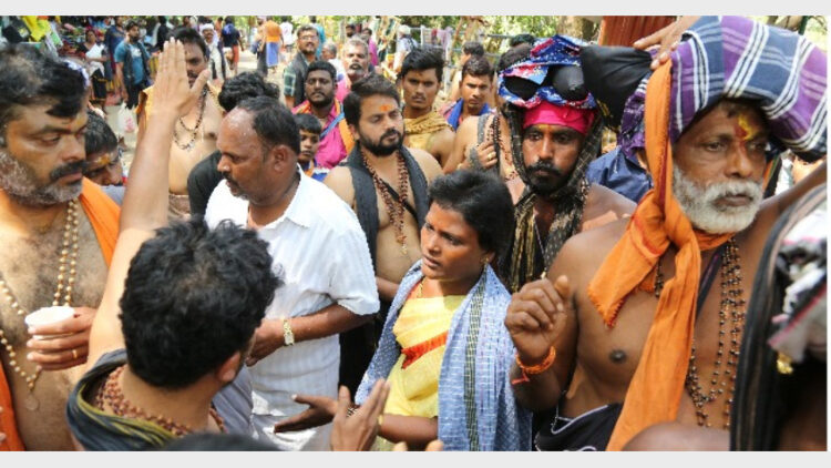 ഉച്ചയ്ക്ക് 12 മണിയോടെയാണ് ഭര്ത്താവിനും പിതാവിനുമൊപ്പം ആന്ധ്ര ഗുണ്ടൂര് സ്വദേശിനിയും ഇരുപത്തിയാറുകാരിയുമായ നവോജാമ്മ എത്തിയത്. ഇവര് സന്നിധാനത്ത് ചന്ദ്രാനന്ദന് റോഡിലെ ബെയ്ലി പാലത്തിന് സമീപം വരെയെത്തി. വലിയ നടപ്പന്തലിലേക്ക് കടക്കുന്നതിന് മുന്നോടിയായി ഭക്തര് സംഘടിച്ച് ശരണം വിളിച്ചു. ഇതോടെ, ഇവര് പമ്പയിലേക്ക് തിരിച്ചുപോയി.