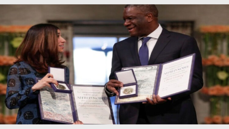 ഓസ്ലോ: സമാധാനത്തിന്റെ നൊബേല്‍ പുരസ്‌കാരം നാദിയ മുറാദിനും ഡെനിസ് മുക്വെഗെയ്‌ക്കും സമ്മാനിച്ചു. ലൈംഗിക പീഡനങ്ങളില്‍ പരിക്കേല്‍ക്കുന്ന സ്ത്രീകളെ ചികിത്സയ്‌ക്കായി പ്രവര്‍ത്തിക്കുന്ന കോംഗോ ഡോക്ടറാണ് ഡെനിസ് മുക്വെഗെക്. ഐഎസിന്റ അടിയമയായിരുന്നു നാദിയ മുറാദ്.