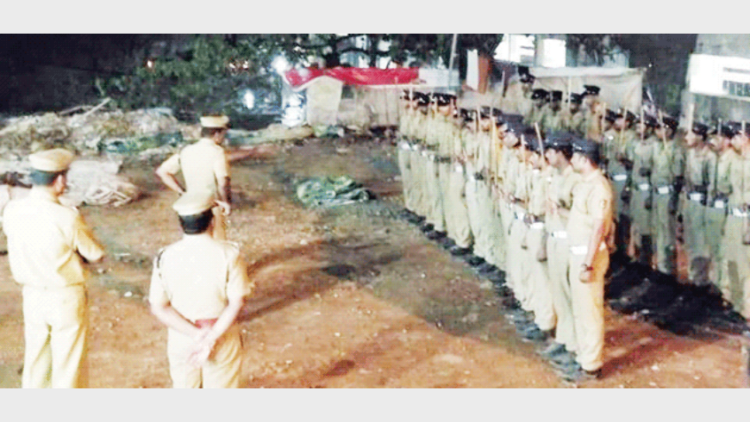 ഒരു ഡിവൈഎസ്പിയുടെ കീഴില് രണ്ട് സിഐമാരും മൂന്ന് എസ്ഐമാരുമാണ് പരിശീലനത്തിന് നേതൃത്വം നല്കിയത്. ബൂട്ടും ലാത്തിയും അടക്കമുള്ള ഫുള് യൂണിഫോമില് ആയിരുന്നു പോലീസുകാരും ഉദ്യോഗസ്ഥരും എല്ലാം. അരമണിക്കൂറോളം കായികപരിശീലനം നടന്നതോടെ കൊപ്രാക്കളത്തിലെ ജീവനക്കാരും കാഴ്ചക്കാരായി എത്തി. ഇതോടെ സംഘം പതിയെ പിന്വാങ്ങി. ഇന്നലെ രാവിലെയും പരിശീലനം നടത്താന് തീരുമാനിച്ചിരുന്നെങ്കിലും അവസാന നിമിഷം ഒഴിവാക്കി.