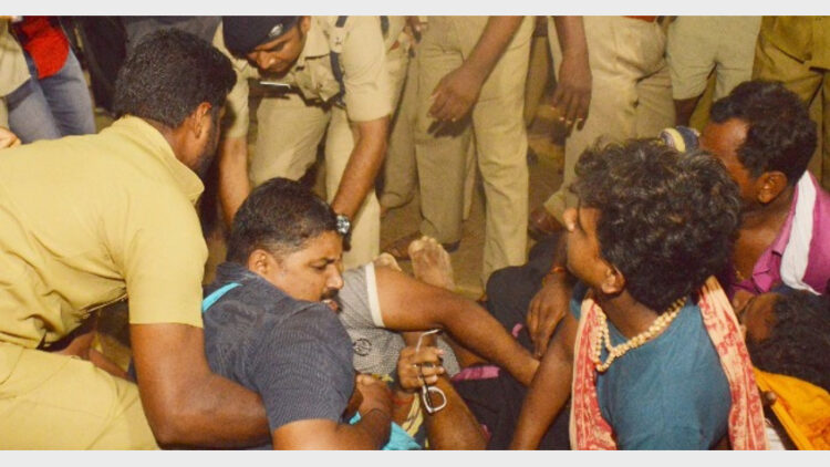 ശബരിമല: പതിനെട്ടാംപടികയറുന്ന ഭക്തരോട് പോലീസ് പെരുമാറിയത് അതിക്രൂരമായി. തിരക്കിന്റെ പേരില്‍ ഭക്തരെ പടിയിലൂടെ വലിച്ചിഴച്ചു. പടിക്ക് മുകളില്‍ തിരുമുറ്റത്ത് പടികയറി വന്ന കന്നി അയ്യപ്പന്‍ ഉള്‍പ്പെടെയുള്ള ഭക്തരെ വലിച്ചെറിഞ്ഞു. ഇരുമുടിക്കെട്ടുമായി കന്നിഅയ്യപ്പനും ഭക്തനും നിലത്തുവീണു. നിരവധി പേര്‍ക്ക് മര്‍ദനമേറ്റു.