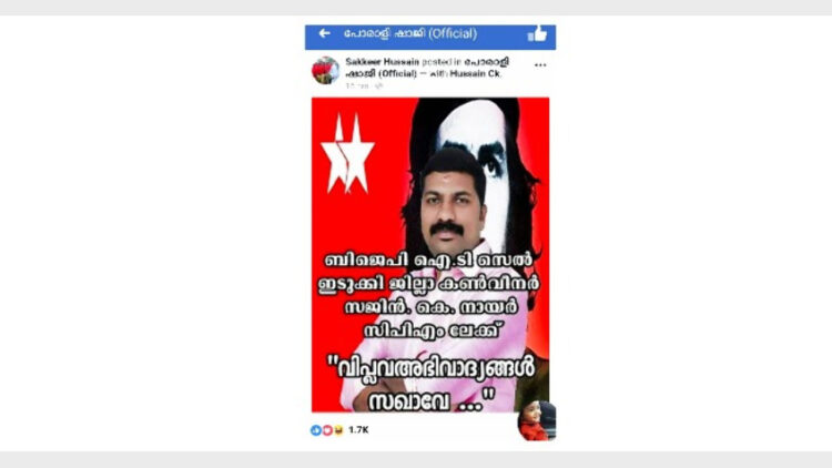 കട്ടപ്പന: ബിജെപിയില് നിന്ന് നേതാക്കള് കൊഴിഞ്ഞുപോകുന്നതായി സിപിഎം സൈബര് പോരാളികളുടെ നേതൃത്വത്തില് ഫേസ്ബുക്കില് വ്യാജപ്രചരണം. ബിജെപി ഇടുക്കി പാര്ലമെന്റ് മണ്ഡലം ഐടി സെല് കണ്വീനറും കട്ടപ്പന മാട്ടുക്കട്ട സ്വദേശിയുമായ സജിന് കെ.നായര്ക്കെതിരെയാണ് വ്യാജപ്രചരണം നടക്കുന്നത്. പ്രീതാ വത്സന്, കബീര്മുഹമ്മദ് തുടങ്ങിയ വിലാസങ്ങളില് നിന്നും പോരാളി ഷാജി, ചുവന്ന ഗ്രാമം കുന്നോത്തുപറമ്പ് തുടങ്ങിയ ഗ്രൂപ്പുകളിലുമാണ് ഇത് വ്യാപകമായി ഷെയര് ചെയ്യുന്നത്.