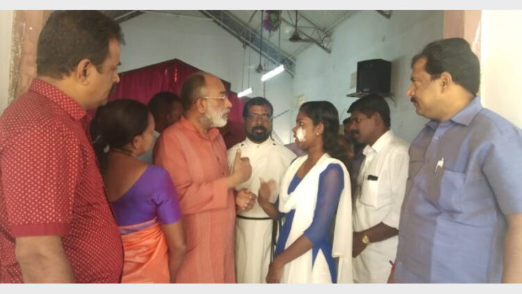 കേന്ദ്ര ടൂറിസം സഹമന്ത്രി അല്ഫോണ്സ് കണ്ണന്താനം പാത്താമുട്ടം കൂമ്പാടി സെന്റ് പോള്സ് ആംഗ്ലിക്കന് പള്ളിയില് അഭയം തേടിയിരുന്ന ആറ് കുടുംബങ്ങളെയും അക്രമകാരികളുടെ കല്ലേറില് ഗുരുതരമായി പരിക്കേറ്റ ബിടെക് വിദ്യാര്ത്ഥിനിയായ എമിയെയും നേരിട്ട് കണ്ടു സമാശ്വസിപ്പിക്കുന്നു