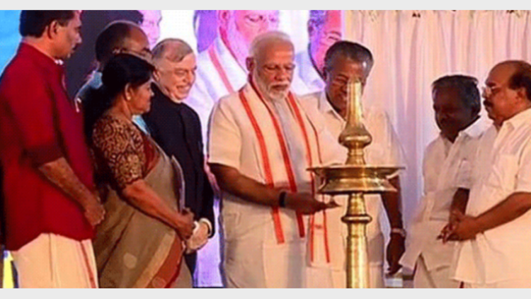 ചടങ്ങിൽ മുഖ്യമന്ത്രി അദ്ധ്യക്ഷത വഹിച്ചു. വൈകിട്ട് 4 മണിയോടെ തിരുവനന്തപുരത്ത് വ്യോമസേനാ ടെക്നിക്കല് ഏരിയയിലാണ് അദ്ദേഹം എത്തിയത്. തുടര്ന്ന് പ്രത്യേക ഹെലികോപ്റ്റര് വഴിയാണ് കൊല്ലത്ത് എത്തിയത്. 7.15നു സ്വദേശ് ദര്ശന് പദ്ധതിയുടെ ഉദ്ഘാടനം നിര്വ്വഹിച്ച ശേഷം മോദി ശ്രീ പത്മനാഭ സ്വാമിക്ഷേത്രത്തില് ദര്ശനം നടത്തും.