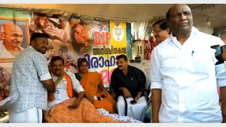 കേരള കോണ്ഗ്രസ് ചെയര്മാന് പി.സി. തോമസ് പി.കെ. കൃഷ്ണദാസിനെ ഷാള് അണിയിച്ച് നിരാഹാര സമരം ഉദ്ഘാടനം ചെയ്തു. ബിജെപി സംസ്ഥാന അധ്യക്ഷന് പി.എസ്. ശ്രീധരന്പിള്ള, ഒ. രാജഗോപാല് എംഎല്എ,