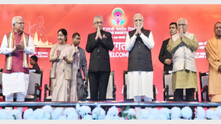 പ്രവാസി ഭാരതീയര്‍  വിദേശരാജ്യങ്ങളിലെ ഇന്ത്യയുടെ ബ്രാന്‍ഡ് അംബാസിഡര്‍മാരാണ്. അവര്‍ ഇന്ത്യയുടെ കരുത്തിന്റെ പ്രതീകങ്ങളാണ്, മോദി പറഞ്ഞു. ഇന്ത്യ മാറില്ലെന്ന ചിന്ത മാറ്റാന്‍ തന്റെ സര്‍ക്കാരിനായി. വിവിധ പദ്ധതികള്‍ വഴി, അനര്‍ഹമായി പണം (സബ്‌സിഡിയും മറ്റാനുകൂല്യങ്ങളും) കൈപ്പറ്റിയിരുന്ന ഏഴു കോടി വ്യാജന്മാരെ കണ്ടെത്താനായി.  കടലാസില്‍ മാത്രം ഉണ്ടായിരുന്ന ഈ വ്യാജന്മാരെ കണ്ടെത്തി ക്ഷേമപദ്ധതികളില്‍ നിന്ന് പുറത്താക്കി. ഇത്തരം വ്യാജന്മാരുടെ  എണ്ണം ബ്രിട്ടന്റെയും ഫ്രാന്‍സിന്റെയും ഇറ്റലിയുടെയും ജനസംഖ്യയേക്കാള്‍ വരും, മോദി പറഞ്ഞു. മൗറീഷ്യസ് പ്രധാനമന്ത്രി പരവിന്ദ്  ജഗന്നാഥ് മുഖ്യാതിഥിയായിരുന്നു.