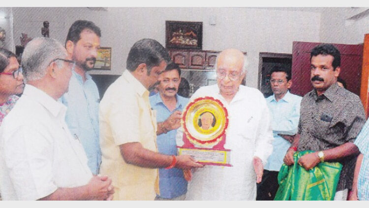 കോട്ടയം: അമ്പലപ്പുഴ ശ്രീകൃഷ്ണ സംഗമസമിതിയുടെ ഗോകുലാചാര്യ പുരസ്കാരം ജസ്റ്റിസ് കെ.ടി. തോമസിന് സമര്പ്പിച്ചു. 10,111 രൂപയും ഫലകവും കൃഷ്ണശില്പവും അടങ്ങുന്നതാണ് പുരസ്കാരം. സമിതി ഭാരവാഹികള് അദ്ദേഹത്തിന്റെ വീട്ടിലെത്തി പുരസ്കാരം സമര്പ്പിച്ചു.