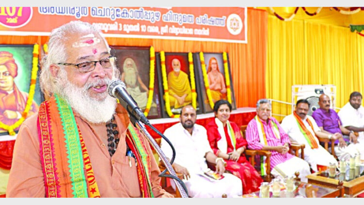 പ്രാന്തീയ വിദ്യാര്ത്ഥി പ്രമുഖ് വത്സന് തില്ലങ്കേരി പ്രഭാഷണം നടത്തി. ഭക്തരുടെ മനസില് വിശ്വാസ തകര്ച്ചയിലുടെ ശൂന്യതയുണ്ടാക്കി അവിടെ മറ്റ് പലതിനും കയറാനുള്ള ഇടം സൃഷ്ടിക്കാനാണ് സര്ക്കാര് ശ്രമിക്കുന്നതെന്ന് അദ്ദേഹം പറഞ്ഞു. കുപ്രചരണങ്ങള്ക്ക് മുന്നില് കൂസാതെ മുന്നോട് പോകാന് കഴിയണം. ഹിന്ദു സംസ്ക്കാരത്തെ ഇല്ലാതാക്കി നാട് ശിഥിലമാക്കാനുള്ള ശ്രമങ്ങളാണ് നടക്കുന്നതെന്നും വത്സന് തില്ലങ്കേരി പറഞ്ഞു.