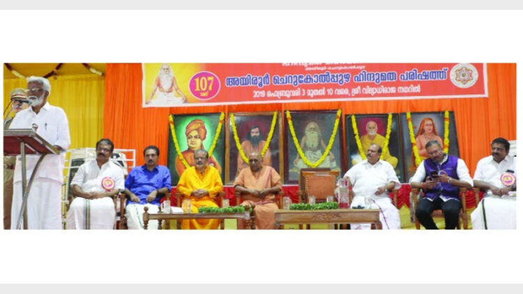 സമൂഹത്തിലെ ആചാരങ്ങള് നിശ്ചയിക്കേണ്ടത് ആചാര്യന്മാരാണ്. വിവിധ ക്ഷേത്രങ്ങളിലെ ആചാര വൈവിധ്യമാണ് ഹിന്ദു മതത്തിന്റെ പ്രത്യേകത. സമൂഹത്തില് എല്ലാവരെയും ധന്യരാക്കുന്നതാണ് യഥാര്ത്ഥ നവോത്ഥാനം. കേരളത്തിന്റെ നവോത്ഥാന ചരിത്രം തന്നെയാണ് ഹിന്ദുമതപരിഷത്തിന്റെ ചരിത്രമെന്നും വരുംവര്ഷങ്ങളില് ഇത് മഹാകുംഭമേളയായി മാറണമെന്നും അദ്ദേഹം പറഞ്ഞു. സ്വാമി ചൈതന്യാനന്ദജി മഹാരാജ് അധ്യക്ഷനായി. ഹിന്ദു മതത്തിന്റെ അടിസ്ഥാനമായ വേദങ്ങള് ഹിന്ദുക്കള് അറിയുകയും പഠിക്കുകയും വേണമെന്ന് സ്വാമി പറഞ്ഞു. ഹിന്ദു മതപഠനത്തിന് പദ്ധതി ഉണ്ടാകണം.