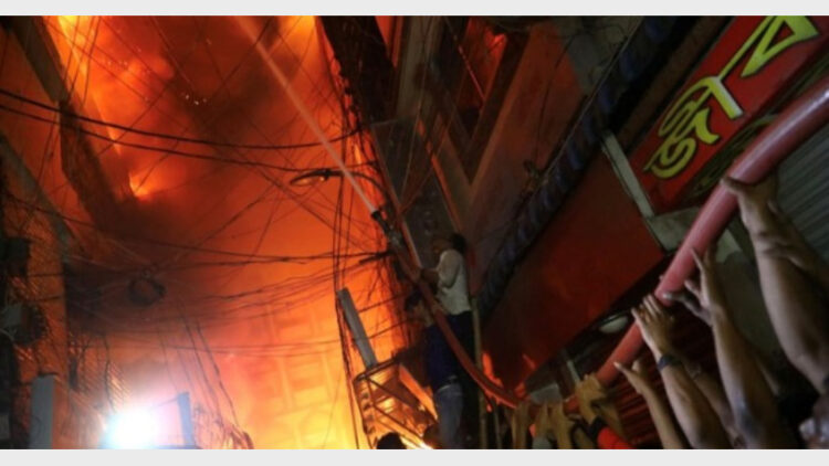 ബുധനാഴ്ച രാത്രിയോടെയാണ് കെട്ടിടത്തിന് തീ പിടിച്ചത്. ഇത് പിന്നീട് മറ്റ് കെട്ടിടങ്ങളിലേക്ക് പടരുകയായിരുന്നു. കെട്ടിടങ്ങളുടെ താഴത്തെ നിലയയില് കടകളും, ഹോട്ടലുകളും, കെമിക്കല്-പ്ലാസ്റ്റിക് സംഭരണ ശാലകളും ഉണ്ടായിരുന്നു. അഞ്ച് കെട്ടിടങ്ങള് അഗ്നിക്കിരയായി. ഒരേ സമയം ജനവാസ കേന്ദ്രവും വാണിജ്യ കേന്ദ്രവുമായ ചൗക്ക് ബസാറില് കെട്ടിടങ്ങള് തമ്മില് നേരിയ അന്തരം മാത്രമാണുള്ളത്. ഇത് തീ മറ്റ് കെട്ടിടങ്ങളിലേക്ക് കൂടി പടരാനിടയാക്കി. കെട്ടിടങ്ങള്ക്കകത്തു സൂക്ഷിച്ചിരുന്ന ഗ്യാസ് സിലിണ്ടറുകള് ഒന്നിനു പുറകെ മറ്റൊന്നായി പൊട്ടിത്തെറിച്ചതായി ദൃക്സാക്ഷികളില് ചിലര് പറയുന്നു.