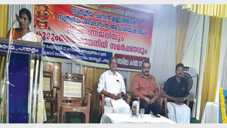 തോന്നല്ലൂര് പാട്ടുപുരക്കാവ് ദേവീക്ഷേത്ര ഓഡിറ്റോറിയത്തില് നടന്ന സഭയില് പന്തളം കൊട്ടാരം നിര്വാഹക സംഘം സെക്രട്ടറി പി.എന്. നാരായണ വര്മ്മ അധ്യക്ഷനായി. പത്തു ലക്ഷം രൂപ വീതമാണ് ഇരു കുടുംബങ്ങള്ക്കും നല്കിയത്. ശിവദാസന് ആചാരിയുടെ ഭാര്യ ലളിത, ശരത് എന്നിവരുടെ പേരിലും ചന്ദ്രന് ഉണ്ണിത്താന്റെ ഭാര്യ വിജയമ്മയുടെ പേരിലും തുക ബാങ്കില് നിക്ഷേപിച്ചതിന്റെ രേഖകളാണ് ടി.പി. സെന്കുമാര് കൈമാറിയത്. പന്തളം തെക്കേക്കരയില് സിപിഎമ്മുകാരുടെ വീടുകയറിയുള്ള ആക്രമണത്തില് ഒരു കണ്ണിന്റെ കാഴ്ച നഷ്ടപ്പെട്ട പൂര്വസൈനികന് രവീന്ദ്രക്കുറുപ്പിനും സഹായം നല്കി.