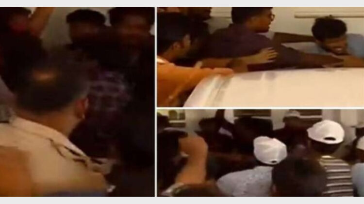 കലോത്സവത്തിന്റെ ഉദ്ഘാടനച്ചടങ്ങ് കഴിഞ്ഞ് എസ്എഫ്ഐ പ്രവര്ത്തകര് എത്തിയതോടെ പ്രതിഷേധം ഇരുവിഭാഗങ്ങള് തമ്മിലുള്ള എറ്റുമുട്ടലിലേക്കും വഴിമാറി. സംഘര്ഷത്തില് ഏതാനും വിദ്യാര്ത്ഥികള്ക്ക് പരിക്കേറ്റിട്ടുണ്ട്.