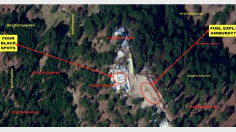 ചെരിഞ്ഞ മേല്ക്കൂരയുള്ള കെട്ടിടമാണു ചിത്രത്തിലുള്ളത്. ഇതിന്റെ മേല്ക്കൂരയില് മൂന്നിടത്ത് തുള വീണിട്ടുണ്ട്. ഒരു മീറ്റര് വ്യാസമുള്ള ദ്വാരങ്ങളാണു മേല്ക്കൂരയിലുള്ളത്. ഇന്ത്യന് വ്യോമസേന ഉപയോഗിച്ച സ്പൈസ് ബോംബുകള് കെട്ടിടത്തിന്റെ ഘടനയ്ക്കു നാശനഷ്ടമുണ്ടാക്കാതെ ഉള്ളില് തുളച്ചുകയറി ഭീകരരെ കൊല്ലുകയാണ് ചെയ്തതെന്ന കേന്ദ്രസര്ക്കാരിന്റേയും വ്യോമസേനയുടേയും വാദങ്ങള് ശരിവെയ്ക്കുന്നതാണ് ഇത്.