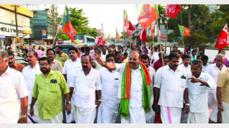 ബിജെപി നേതാക്കളായ കെ.എ. സുരേഷ്, ഷാജുമോന് വട്ടേക്കാട്, സര്ജു തൈക്കാവ്, സി.പി. സെബാസ്റ്റ്യന്, കെ. എം. സുബ്രഹ്മണ്യന്, കെ.യു. ദിനേശനന്, അഡ്വ. സജി കുറുപ്പ്, ടി.വി. പ്രജിത്, പി.എസ്. ശ്രീരാമന്, ബിഡിജെഎസ് നേതാക്കളായ കെ. എ. ഉണ്ണികൃഷ്ണന്, അനില് തോട്ടവീഥി, ലത ബാലന് എന്നിവര് നേതൃത്വം നല്കി.