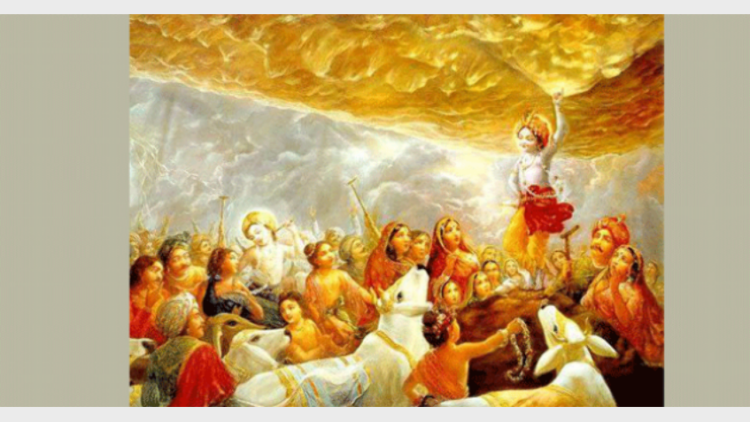 ജ്ഞാനികളാണ് ലോകത്തിന് നന്മ വരുത്തുന്നത്. അതുകൊണ്ട് യാഗവും യജ്ഞവും അവരെ പ്രീതിപ്പെടുത്താനാണ് വേണ്ടത് ഇന്ദ്രനു വേണ്ടിയല്ല ഇതൊക്കെ നടത്തേണ്ടതെന്നു പറഞ്ഞതനുസരിച്ച് ഗോപന്മാര് പര്വതത്തേയും ജ്ഞാനികളേയും പ്രസാദിപ്പിക്കാനൊരുങ്ങി. ഇതുകണ്ടു ക്രുദ്ധനായ ഇന്ദ്രന് ഗോകുലവും വനവും പശുക്കളേയും മറ്റെല്ലാത്തിനേയും പേമാരി കൊണ്ട് നശിപ്പിക്കാനായി ശക്തമായ മേഘങ്ങളെ അയച്ചു. തന്റെ ശാസ്ത്രയുക്തി വ്യക്തമായി മനസ്സിലാക്കിക്കൊടുത്ത ഭഗവാനെ അങ്ങ് അടിയന്റെ രോഗങ്ങളകറ്റേണമേ.