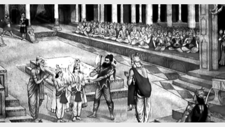 ശാന്തനായി നിലകൊണ്ട രാമനോട് പരശുരാമന് ചോദിച്ചു. ‘നീയാണോ രാമന്?’ അതെ, സ്വാമീ ഞാന് ദശരഥപുത്രനായ രാമനാണ്. അങ്ങ് ജമദഗ്നിയുടെ പുത്രനായ ഭൃഗുരാമനല്ലേ എന്നായിരുന്നു ശ്രീരാമന്റെ മറുപടി. അതേ ഞാന് ഭാര്ഗവരാമനാണ്, രാഘവരാമനായ നീ എന്റെ ജന്മശത്രുവാണ്, പരശുരാമന് പറഞ്ഞു. ഞാന് ശത്രുവല്ല. വെറുമൊരു ബാലനായ ഞാന് അങ്ങയുടെ ദാസന് കൂടിയാണ്. രാമന് എന്ന പേര് നമുക്ക് രണ്ടു പേര്ക്കുമുള്ളതു കൊണ്ട് നമ്മള് മിത്രങ്ങളുമാണ്, വിനീതനായി രാമന് മറുപടി നല്കി.