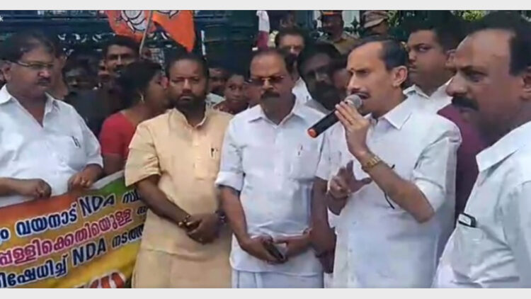 തിരുവനന്തപുരം : വയനാട് മണ്ഡലത്തിലെ സ്ഥാനാര്ത്ഥി തുഷാര് വെള്ളാപ്പള്ളിക്ക് നേരെ ആക്രമണം ഉണ്ടായതില് പ്രതിഷേധിച്ച് സെക്രട്ടറിയേറ്റിലേക്ക് എന്ഡിഎ മാര്ച്ച് നടത്തി. ബിജെപി ജനറല് സെക്രട്ടറി മാര്ച്ച് ഉദ്ഘാടനം നിര്വ്വഹിച്ചു.