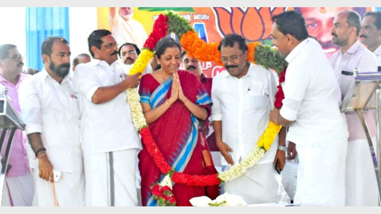 വടകര: നരേന്ദ്ര മോദിയുടെ ഭരണത്തുടര്ച്ച ഭാരതത്തിന്റെ വികസനത്തുടര്ച്ചയാകുമെന്ന് കേന്ദ്ര പ്രതിരോധമന്ത്രി നിര്മല സീതാരാമന് വടകരയില് പറഞ്ഞു. എന്ഡിഎ വടകര പാര്ലമെന്റ് മണ്ഡലം സ്ഥാനാര്ഥി അഡ്വ. വി.കെ. സജീവന്റെ തെരഞ്ഞെടുപ്പ് പ്രചരണാര്ഥം വടകര കോട്ടപ്പറമ്പില് സംഘടിപ്പിച്ച പൊതുസമ്മേളനത്തില് സംസാരിക്കുകയായിരുന്നു അവര്.