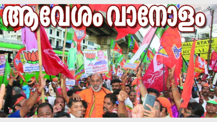 മൂവാറ്റുപുഴ: പ്രവര്ത്തകരില് ആവേശം നിറച്ച് മൂവാറ്റുപുഴ, കോതമംഗലം, പിറവം, പെരുമ്പാവൂര്, പട്ടിമറ്റം, കോലഞ്ചേരി എന്നി സ്ഥലങ്ങളില് എന്ഡിഎയുടെ കലാശക്കൊട്ട്. അമ്മമാരും സഹോദരിമാരും പങ്കെടുത്തത് വേറിട്ടകാഴ്ചയായി.