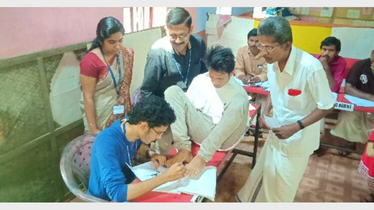 ജന്മനാ ഇരുകൈകളുമില്ലാത്ത പ്രണവ് കാലുകൊണ്ടാണ് വോട്ട് ചെയ്തത്. ഇടതുകാലിന്റെ പെരുവിരലിലാണ് മഷി പുരട്ടിയത്. ചിറ്റൂര് കോളേജിലെ ബികോം അവസാന വര്ഷ വിദ്യാര്ത്ഥിയാണ് പ്രണവ്.