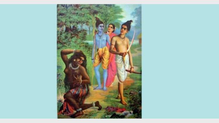 രാമനെക്കണ്ട് ശൂര്പ്പണഖ പ്രണമിച്ചു. ശൂര്പ്പണഖയെ സ്വാഗതം ചെയ്ത് ഭവതിയുടെ പേരെന്താണ്, എവിടെ നിന്ന് വരുന്നു എന്നെല്ലാം രാമന് അന്വേഷിച്ചു. ‘ ഞാന് ബ്രഹ്മഗോത്രത്തില് ജനിച്ചവളാണ്. വിശ്രവസ്സിന്റെ പുത്രി. വൈശ്രണവന്റെ കനിഷ്ഠ സഹോദരി.’ ശൂര്പ്പണഖ തന്നെ രാമന് പരിചയപ്പെടുത്തി. വരനെ അന്വേഷിച്ചു നടക്കുകയാണെന്നും ആരെയും തനിക്ക് അനുരൂപനായി തോന്നുന്നില്ലെന്നും എന്നാല് അങ്ങയെ കണ്ടതോടെ പ്രണയപരവശയായിത്തീര്ന്നുവെന്നും ശൂര്പ്പണഖ പറഞ്ഞു.