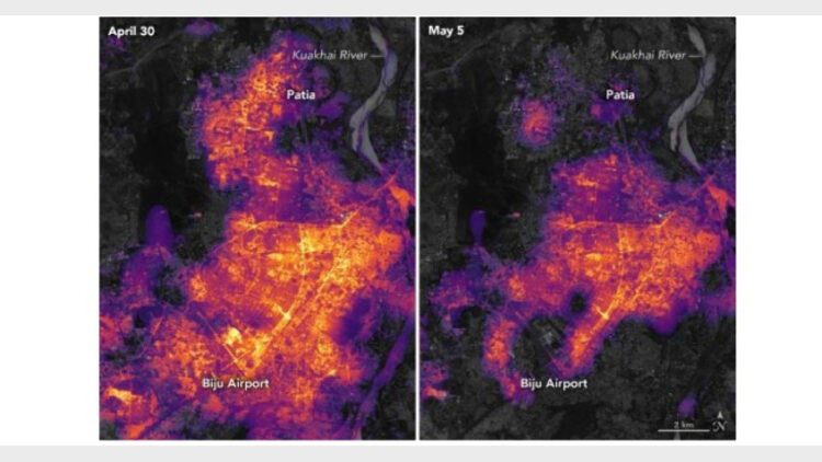 തലസ്ഥാനമായ ഭുവനേശ്വറിലേക്ക് ഫോനി എത്തുന്നതിന് മുന്‍പ്, ഏപ്രില്‍ 30ന് എടുത്ത ചിത്രവും ഫോനിക്ക് ശേഷം മെയ് അഞ്ചിനെടുത്ത ചിത്രങ്ങളുമാണുള്ളത്. ഇരുപത് വര്‍ഷത്തിനുള്ളില്‍ രാജ്യത്തെ ബാധിച്ച ഏറ്റവും വലിയ ചുഴലിയായിരുന്നു ഫോനി. ഒഡീഷയിലെ പല മേഖലകളിലും ഇപ്പോഴും വൈദ്യുതി പുനഃസ്ഥാപിക്കാന്‍ കഴിഞ്ഞിട്ടില്ലെന്ന് ചിത്രങ്ങളില്‍ വ്യക്തമാണ്. ഇവിടങ്ങളിലെ ട്രാന്‍സ്മിഷന്‍ ടവറുകളും 1,56,000 വൈദ്യുത പോസ്റ്റുകളും തകര്‍ന്നു. പുരിയിലെയും ഭുവനേശ്വറിലെയും ജനങ്ങള്‍ ഇപ്പോഴും ഇരുട്ടിലാണ്. ഞായറാഴ്ചയോടു കൂടിയെ തലസ്ഥാനത്ത് വൈദ്യുതി ലഭ്യമാക്കാന്‍ സാധിക്കൂവെന്ന് ഒഡീഷ സര്‍ക്കാര്‍ അറിയിച്ചു. മതിയായ തൊഴിലാളികളെ ലഭ്യമല്ലാത്തതിനാല്‍ പുരിയിലെയും ഖുര്‍ദയിലെയും വൈദ്യുതിയും ആശയവിനിമയ ഉപാധികളും പുനഃസ്ഥാപിക്കുന്നതിന് കേന്ദ്രത്തിന്റെ സഹായവും സര്‍ക്കാര്‍ തേടി.