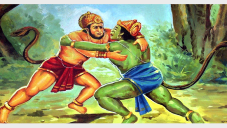 ബാലിസുഗ്രീവന്മാരുടെ ദ്വന്ദയുദ്ധമാരംഭിച്ചു. അന്യോന്യം അടിച്ചും മുഷ്ടികള് മുറുക്കെ ചുരുട്ടി മാറത്തടിച്ചും കരചരണങ്ങള് ഞെരിച്ചും അവര് ഘോരയുദ്ധം തുടങ്ങി.