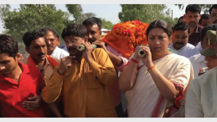 സംസ്കാര ചടങ്ങില് പങ്കെടുത്ത സ്മൃതി കടുത്തഭാഷയിലാണ് പ്രതികരിച്ചത്. കോണ്ഗ്രസിനെ പരോക്ഷമായി വിമര്ശിക്കുന്ന വാക്കുകളാണ് ഉപയോഗിച്ചത്. അമേഠി സമാധനപരമായി സന്തോഷത്തോടെ കൈമാറണമെന്ന് ഫലംവന്ന ദിവസം താന് പ്രസ്താവിച്ചകാര്യം സ്മൃതി ഓര്മ്മിപ്പിച്ചു. എന്നാല്, ഈ സംഭവം ഞെട്ടിച്ചു. കൊലയാളികളെ കണ്ടെത്താന് എല്ലാ ശ്രമവും നടത്തും. അമേഠിയെ ഭീകരരുടെ താവളമാക്കാന് ഒരിക്കലും അനുവദിക്കില്ല, സ്മൃതിപറഞ്ഞു.