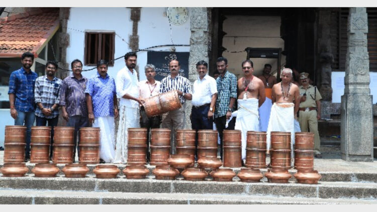 ആറ് കിലോ സ്വര്‍ണമാണ് വേണ്ടി വരുന്നത്. ചെമ്പ് പറകള്‍ ക്ഷേത്ര മാനേജര്‍ ബി. ശ്രീകുമാര്‍  ഏറ്റുവാങ്ങി. ചടങ്ങില്‍ സനില്‍കുമാര്‍, ഗാര്‍ഡ് കമാന്‍ഡര്‍ ബി.ഗോപകുമാര്‍, കെ.ആര്‍. രാജന്‍, രാജേന്ദ്രന്‍ എന്നിവര്‍ സംബന്ധിച്ചു.