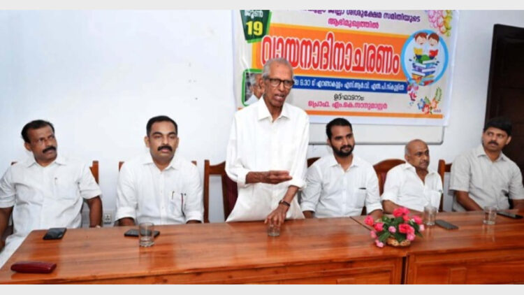 കൊച്ചി: ജില്ലാ ശിശുക്ഷേമ സമിതിയുടെ നേതൃത്വത്തില്‍ വായന ദിനാചരണത്തിന്റെ ജില്ലാതല ഉദ്ഘാടനം എറണാകുളം എസ്ആര്‍വിഎല്‍പി സ്‌കൂളില്‍ നടന്നു. പ്രൊഫ. എം.കെ. സാനു ഉദ്ഘാടനം ചെയ്തു. ശിശു ക്ഷേമസമിതി ഉപാധ്യക്ഷന്‍ അഡ്വ. കെ.എസ് അരുണ്‍കുമാര്‍ അധ്യക്ഷനായി. കുട്ടികളുടെ വളര്‍ച്ചക്ക് ഭക്ഷണവും വെള്ളവും ആവശ്യമായതു പോലെ വായനയും അത്യാവശ്യമാണെന്നും നല്ല വായനയുള്ള കുട്ടികള്‍ക്ക് നല്ല മാനസിക വളര്‍ച്ചും ഉണ്ടാകുമെന്നും എം.കെ സാനു പറഞ്ഞു. പുസ്തകങ്ങളാണ്  കുട്ടികളുടെ അടുത്ത സുഹൃത്തുക്കള്‍ എന്നും നവ മാധ്യമങ്ങളുടെ ഉപയോഗം വായനയുടെ മരണമായി മാറ്റരുതെന്നും അദ്ദേഹം പറഞ്ഞു.