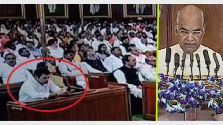 രാഷ്ട്രപതിയുടെ പ്രസംഗം ഒരു മണിക്കൂര് നീണ്ടപ്പോള് അതില് 24 മിനിട്ടും രാഹുല് മൊബൈലില് കുത്തിക്കൊണ്ടിരിക്കുകയായിരുന്നു. ഇതിനിടയില് രണ്ട് തവണ സെല്ഫിയും എടുത്തു. മോദി സര്ക്കാരിന്റെ രണ്ടാം വരവില് സര്ക്കാര് പൂര്ത്തിയാക്കേണ്ട നിര്ണ്ണായക പദ്ധതികളെ കുറിച്ചുള്ള വിവരങ്ങളാണ് രാഷ്ട്രപതി പ്രസംഗിച്ചത്. ഈ സമയം തീര്ത്തും അപക്വമായും രാഷ്ട്രപതിയെ തന്നെ പരിഹസിക്കുന്ന വിധത്തിലുമാണ് രാഹുല് പെരുമാറിയത്.