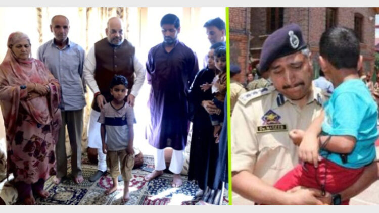 ഭീകരാക്രമണത്തില്‍ വീരമൃത്യു വരിച്ച പോലീസ് ഉദ്യോഗസ്ഥന്റെ അഞ്ചു വയസുള്ള മകനെയും കുടുംബാംഗങ്ങളെയും ആശ്വസിപ്പിച്ച് അമിത് ഷാ; അര്‍ഷാദ് അഹമ്മദിന്റെ ധീരതയില്‍ രാജ്യം അഭിമാനിക്കുന്നുവെന്ന് ആഭ്യന്തരമന്ത്രി