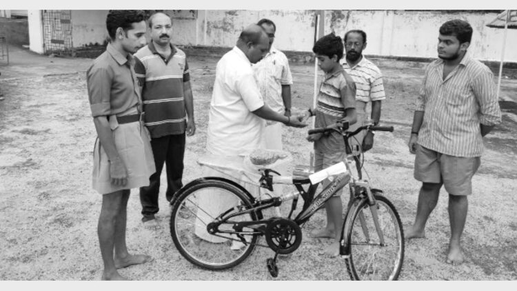 നെയ്യാറ്റിന്കര: യാത്രാ ബുദ്ധിമുട്ട് പരിഹരിക്കാന് സൈക്കിള് സമ്മാനിച്ച് സ്വയം സേവകര്. രാഷ്ട്രീയ സ്വയംസേവക സംഘം കൃഷ്ണന്കോവില് ശാഖയിലെ ബാല സ്വയംസേവകനാണ് അതേ ശാഖയിലെ സേവാ വിഭാഗം സൈക്കിള് സമ്മാനിച്ചത്.