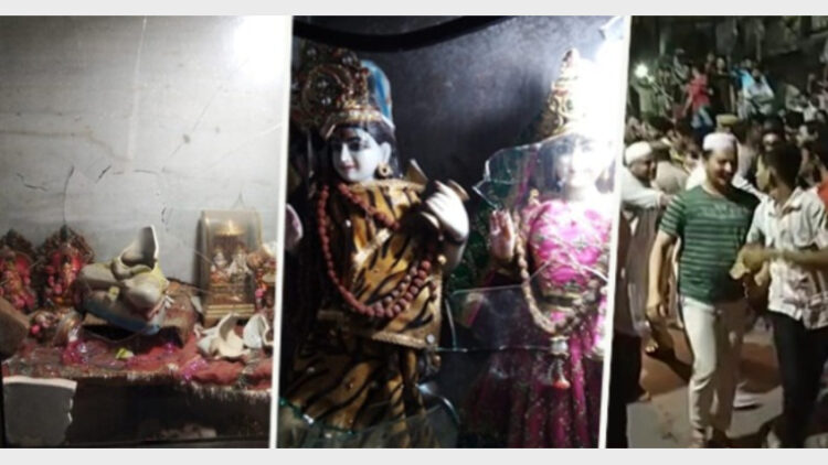 മുഹമ്മദ്, സഞ്ജീവ് കുമാര്‍ എന്നിവര്‍ തമ്മില്‍ പാര്‍ക്കിങ്ങിനെച്ചൊല്ലിയുണ്ടായ തര്‍ക്കമാണ് തുടക്കം. ഇതിന് പിന്നാലെ ഒരു സംഘം മുസ്ലിങ്ങളെത്തി പ്രകോപനമുണ്ടാക്കാന്‍ ക്ഷേത്രത്തിന് മുന്നിലിരുന്ന് മദ്യപിച്ചു. ഇത് ചോദ്യം ചെയ്തതോടെയാണ് നൂറ് വര്‍ഷത്തോളം പഴക്കമുള്ള ദുര്‍ഗാ മന്ദിര്‍ ആക്രമിച്ചത്. വിഗ്രഹങ്ങള്‍ തകര്‍ത്തു. സഞ്ജീവ് കുമാറിന്റെ വീട് അടിച്ചുതകര്‍ക്കുകയും ഭാര്യയെയും പ്രായമായ അമ്മയെയും മര്‍ദ്ദിക്കുകയും ചെയ്തു.  പ്രദേശത്ത് സുരക്ഷ ശക്തമാക്കിയിട്ടുണ്ട്. അര്‍ദ്ധസൈനികരെ ഉള്‍പ്പെടെ ആയിരത്തിലേറെ സുരക്ഷാ ഉദ്യോഗസ്ഥരെ നിയോഗിച്ചു.