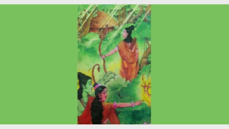 അവര് അന്യോന്യം അമ്പെയ്തു തുടങ്ങി. അവ ഉത്തരോത്തരം അസഹ്യമായിത്തീര്ന്നു. യുദ്ധം മൂന്നു വിധമുണ്ട്. സത്യയുദ്ധം, കപടയുദ്ധം, മായായുദ്ധം. പറഞ്ഞുകേട്ടും അറിഞ്ഞും അറിയിച്ചും നേരേ നിന്നു നടത്തുന്നത് സത്യയുദ്ധം. ഒന്നു പറഞ്ഞ് മറ്റൊന്ന് ചെയ്തും ലക്ഷ്യം കുറിച്ച് മറിച്ച് പ്രയോഗിച്ചും മുറതെറ്റിയും നടത്തുന്നത് കപടയുദ്ധം ഒളിച്ചു നിന്ന് മായപ്രയോഗിക്കുന്നത് മായായുദ്ധം. സത്യയുദ്ധത്തില് തോല്ക്കുമെന്നായപ്പോള് മേഘനാദന് കപടയുദ്ധമാരംഭിച്ചു. അതോടെ മായാ യുദ്ധത്തിന് തയാറെടുത്ത് സ്വന്തം കാമചരവിമാനത്തില് കയറി മായാവി മാനത്തു മറഞ്ഞു. മായാവിയാകാന് മേഘനാദന് ഒരുങ്ങുന്നത് വിഭീഷണനു മനസ്സിലായി. ‘സന്ധ്യയാകാറായി. രാക്ഷസന്മാരുടെ മായാവിദ്യകള്ക്ക് രാത്രിയാണ് പറ്റി സമയം. മേഘനാദന് അതിനൊരുങ്ങുകയാണ്. നമുക്ക് ഇന്നത്തെ യുദ്ധം മതിയാക്കി പാളയത്തിലേക്ക് മടങ്ങാം.’