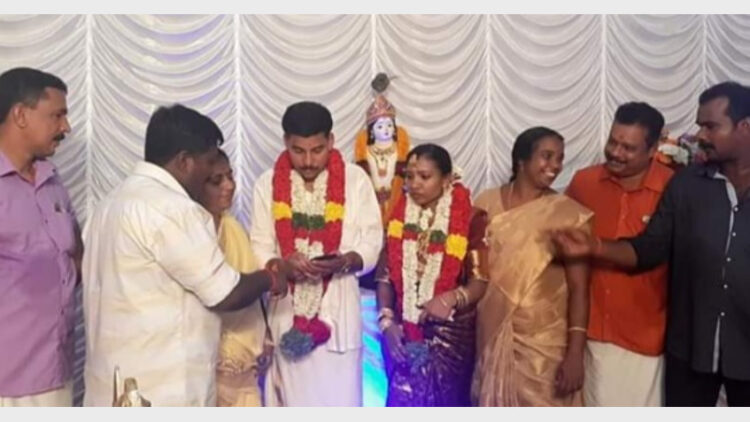 വിവാഹചടങ്ങിന് ശേഷം അരുവിക്കര മണ്ഡലം പ്രസിഡന്റ് മുളയറ രതീഷ് ടോള്ഫ്രീ നമ്പരിലൂടെ അംഗത്വം ചേര്ക്കുകയായിരുന്നു. മണ്ഡലം ജനറല്സെക്രട്ടറിമാരായ പൂവച്ചല് ജ്യോതികുമാര്, എം.ബി. രഞ്ജിത്ത്, സംസ്ഥാന സമിതിയംഗം പ്രീതാ ശ്രീകുമാര്, ബിജെപി കുറ്റിച്ചല് പഞ്ചായത്ത് പ്രസിഡന്റ് ബിനില്, കുറ്റിച്ചല് ഗ്രാമപഞ്ചായത്തംഗം കൃഷ്ണകുമാരി തുടങ്ങിയവര് പങ്കെടുത്തു.