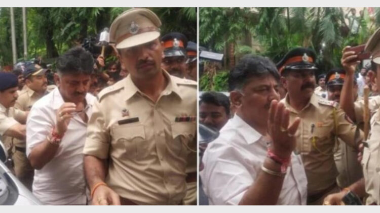 അടിയന്തര സാഹചര്യങ്ങള് കണക്കിലെടുത്ത് നേരത്തേ ഹോട്ടല് അധികൃതര് ശിവകുമാറിന്റെ ബുക്കിങ് റദ്ദാക്കിയിരുന്നു. തങ്ങള് ഒരുമിച്ച് രാഷ്ട്രീയത്തില് പ്രവേശിച്ചവരാണെന്നും ചില അഭിപ്രായ വ്യത്യാസങ്ങളുണ്ടായെന്നും അതുപറഞ്ഞ് തീര്ക്കാനാണ് തങ്ങള് വരുന്നതെന്നും ശിവകുമാര് അറിയിച്ചെങ്കിലും പോലീസ് അത് മുഖവിലയ്ക്കെടുത്തില്ല. എന്നാല് തന്റെ ഭരണഘടനാപരമായ അവകാശങ്ങളെ മഹാരാഷ്ട്ര പോലീസ് തടയുകയാണെന്നു എംഎല്എമാരെ കാണാതെ താന് പിന്നോട്ട് പോകില്ലെന്നും അദ്ദേഹം അറിയിച്ചു. ഏഴ് കോണ്ഗ്രസ് എംഎല്എമാരും മൂന്ന് ജെഡിഎസ് എംഎല്എമാരുമാണ് മുംബൈയിലെ ഹോട്ടലില് കഴിയുന്നത്. ശിവറാം ഹെബ്ബാര്, പ്രതാപ് ഗൗഡപാട്ടില്, ബി.സി. പാട്ടീല് , ഖൈരിബസവരാജ്, എസ്.ടി. സോമശേഖര്, രമേശ് ജാര്ഖിഹോള, ഗോപാലയ്യ, എച്ച്. വിശ്വനാഥ്, നാരായണഗൗഡ, മഹേഷ് കുമുതാലി എന്നീ എംഎല്എമാരാണ് സിറ്റി പോലീസ് കമ്മിഷണര്ക്ക് കത്ത് നല്കിയത്.