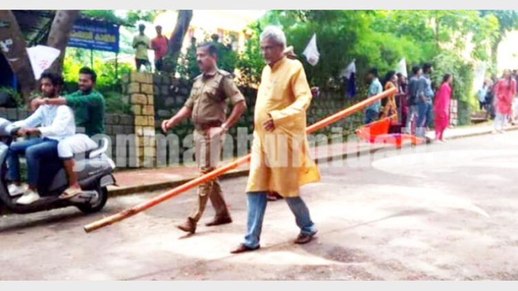 കണ്ണൂര്: ധീരബലിദാനി വിശാലിന്റെ അനുസ്മരണത്തോടനുബന്ധിച്ച് തലശേരി ബ്രണ്ണന് കോളേജില് എബിവിപി പ്രവര്ത്തകര് സ്ഥാപിച്ച കൊടിമരം പിഴുതുമാറ്റി പ്രിന്സിപ്പല്. വിശാല അനുസ്മരണത്തോടനുബന്ധിച്ച് കഴിഞ്ഞദിവസം കോളേജില് എബിവിപി പ്രവര്ത്തകര് താല്ക്കാലിക കൊടിമരം സ്ഥാപിച്ചിരുന്നു. എന്നാല് ഏതാനും മണിക്കൂറുകള്ക്കകം പോലീസിനെ വിളിച്ച് വരുത്തിയ പ്രിന്സിപ്പാള് കൊടി പിഴുത് ധര്മ്മടം എസ്ഐ മഹേഷ് കണ്ടമ്പേത്തിന്റെ നേതൃത്വത്തിലുള്ള പോലീസ് സംഘത്തിന് കൈമാറുകയായിരുന്നു. പ്രിന്സിപ്പാള് തന്നെയാണ് കൊടിമരം പൊക്കിയെടുത്ത് പോലീസ് വാഹനം വരെ നടന്ന് ചെന്ന് പോലീസിന് കൈമാറിയത്.