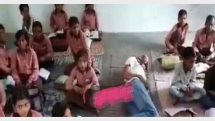 ഉത്തര്പ്രദേശിലെ സിതപ്പൂര് ജില്ലയിലാണ് ഇത്തരമൊരു സംഭവം നടന്നത്. പ്രൈമറി അദ്ധ്യാപകനായ അതുല് കുമാര് മിശ്ര തറയില് കുട്ടികളുടെ നടുവില് തലയില് തുണിമൂടി കിടന്നുറങ്ങുന്ന ചിത്രമായിരുന്നു സോഷ്യല് മീഡിയയിലൂടെ പ്രചരിച്ചത്.