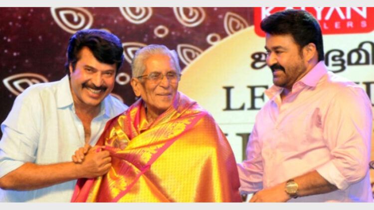 തൃശൂര്‍: പൂരനഗരിയിലെ ജന്മഭൂമി പുരസ്‌കാരവേദിയില്‍ രണ്ട് മഹാപ്രതിഭകള്‍ക്ക് ആദരം. മലയാള ഭാഷയുടെ മഹാകവി അക്കിത്തത്തിനെയും സിനിമയിലെ മഹാപ്രതിഭ കെ.എസ്.സേതുമാധവനെയും ആദരിക്കാന്‍ രണ്ട് മഹാനടന്മാര്‍ ഒന്നിച്ചു. ജന്മഭൂമി ലജന്റ്‌സ് ഓഫ് കേരള പുരസ്‌കാരവേദിയില്‍ സിനിമയിലെ താരങ്ങള്‍ ഒത്തുകൂടിയപ്പോള്‍ പുരനഗരിക്കത് ആഹ്ലാദപ്പെരുമഴയായി.
