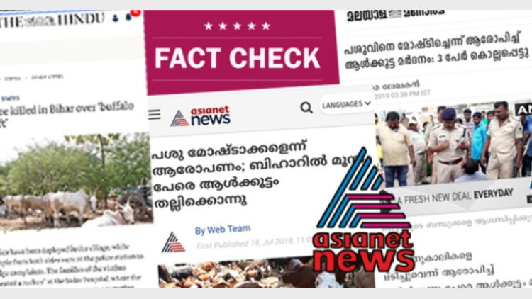 ബീഹാറിലെ സരണ് ജില്ലയിലാണ് സംഭവം ഉണ്ടായത്. മോഷ്ടാക്കളും വീട്ടുകാരും തമ്മിലുണ്ടായ സംഘര്ഷത്തില് രണ്ടുപേര് സംഭവസ്ഥലത്തുവച്ചും ഒരാള് ആശുപത്രിയിലേക്ക് കൊണ്ടു പോകും വഴിയുമാണ് മരണപ്പെട്ടത്. ദേശീയ മാധ്യമങ്ങള് ഇക്കാര്യങ്ങള് കൃത്യമായി റിപ്പോര്ട്ട് ചെയ്തിരുന്നു. എന്നാല്, മലയാളത്തില് എത്തിയപ്പോള് എരുമയെ പശുവാക്കി രൂപാന്തരപ്പെടുത്തി വ്യാജവാര്ത്ത സൃഷ്ടിക്കുകയാണ് ഉണ്ടായത്.