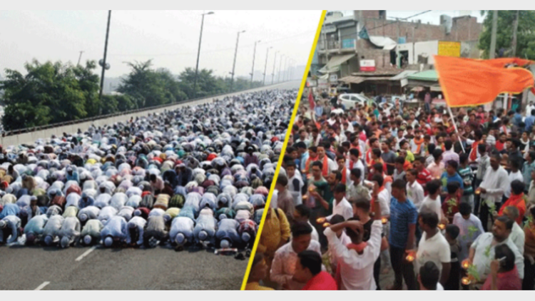 അലീഗഡ് റോഡുകളില്‍ മുസ്ലീങ്ങളുടെ നമാസ്; ‘മഹാ ആരതി’യുമായി ഹൈന്ദവ പ്രതിഷേധം; മതപരമായ പരിപാടികള്‍ റോഡുകളില്‍ വേണ്ടെന്ന് ജില്ലാ മജിസ്‌ട്രേറ്റ്