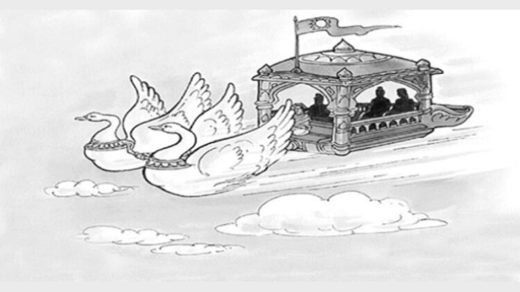 പുരാണങ്ങളിലെ പരാമര്ശങ്ങളില് എല്ലാവരെയും അതിശയിപ്പിക്കുന്നത് പുഷ്പകവിമാനം എന്ന യന്ത്രമാണ്. കഥയില്, രാവണന്റെ സാങ്കേതികസഹായി ഉണ്ടാക്കിയ വിമാനമാണത്. വേറൊരുഭാഗത്ത് ആധുനിക റോക്കറ്റ് സംവിധാനത്തെക്കുറിച്ച് പറയുന്നുണ്ട്. അതിലും വിവരണമില്ല. സൂര്യനില്നിന്ന് ഊര്ജം എടുത്ത് വൈദ്യുതിയുണ്ടാക്കി, ഘനവാതകങ്ങള് (ഹെവി ഗ്യാസസ്) അയണൈസ് ചെയ്ത് ഒരു നോബിലൂടെ പുറത്തേക്ക് വിടുമ്പോള് ഉണ്ടാകുന്ന പുറംതള്ളല് ശക്തിയില് റോക്കറ്റിനു മുകളിലേക്കോ വശങ്ങളിലേക്കോ പോകാന്കഴിയും.